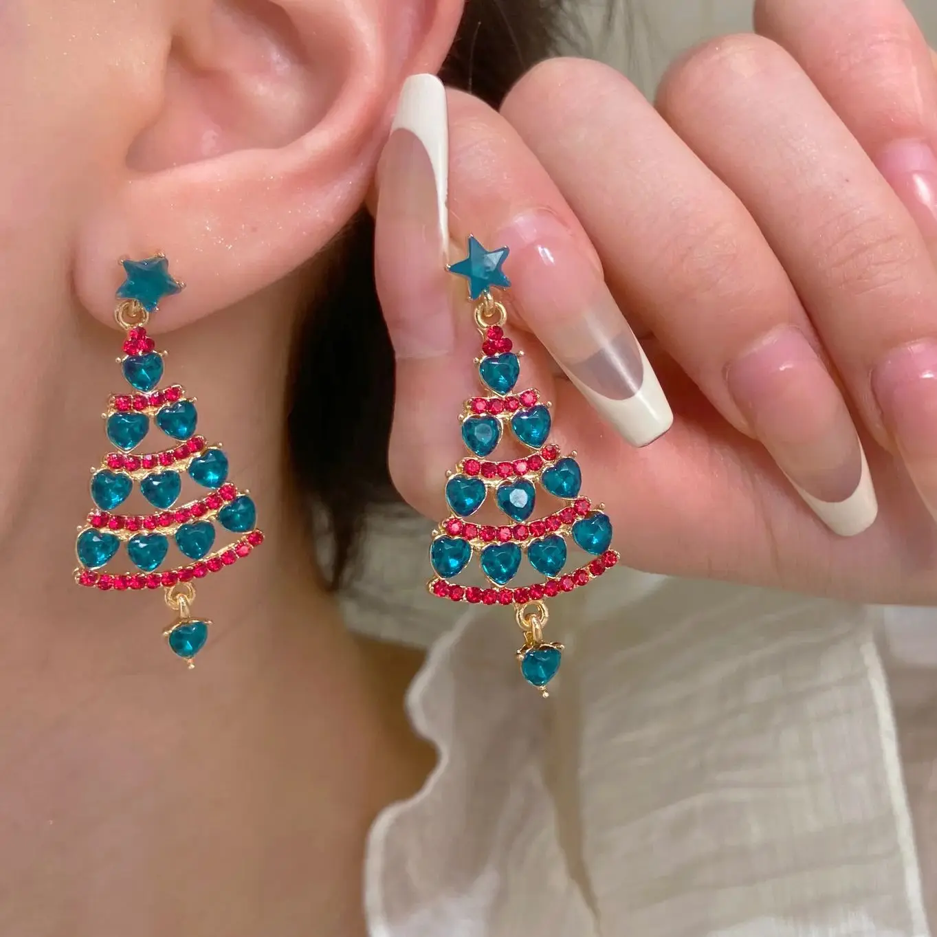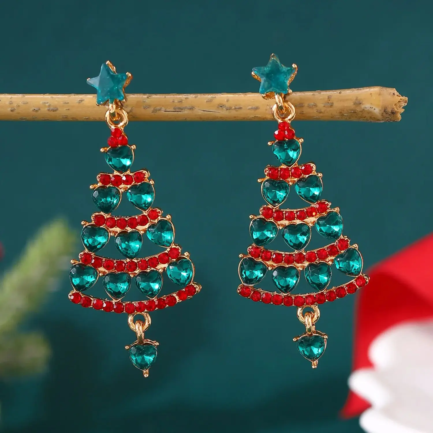 Colorful Zircon Christmas Tree Earrings for Women Fashion Red Green Crystal Tree Pendant Earring